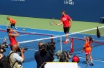 Tennis champions Serena Williams and Stan Wawrinka (Stan the Man) promoting tennis game among future champions at the 2014 edition of the US Open in New York.